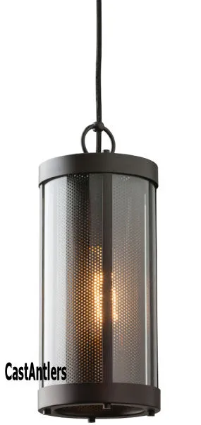 This chandelier has a perforated screen shade much like that of a cozy fireplace with decorative hooks and rods adding to the unique, rustic details. Using antique-style bulbs furthers the warm and inviting look.