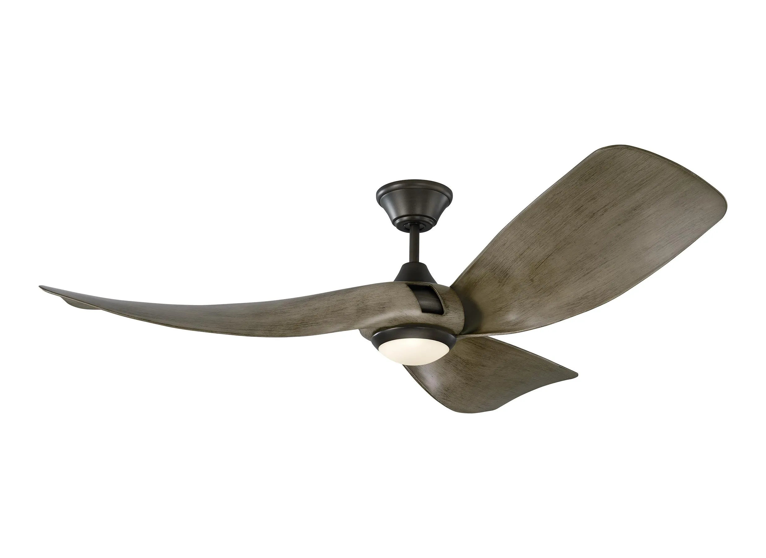 Ceiling fan has a 18W LED downlight with 875 net lumens for output. The blades are a light grey weathered oak finish and and aged pewter housing. The fan is damp rated, so in addition to being used inside, it can also be used in outdoor areas which are not exposed to rain like a covered patio, sunrooms or screen porch. Airflow is 7,212 CFM (cubic feet of air per minute). 268 CFM/WATT. Remote control included. Fan has Aged Pewter finish. Comes with 6" downrod.