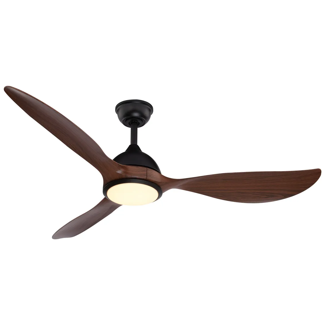 The Long Grove 56-inch LED ceiling fan introduces a black finish paired with deep walnut finish blades and a smooth dome style housing for a fresh contemporary presence. Frosted white glass softens the integrated LED light, which produces up to 1000 lumens, and selectable color temperature options at 3000K, 4000K, and 5000K. A quiet DC motor provides six fan speeds, reversible airflow, dimmable lighting, and 1-hour, 4-hour, and 8-hour timer functions, all controlled through the included remote. Designed for dry indoor spaces, the Long Grove fan offers a refined balance of modern styling and everyday comfort for living rooms, bedrooms, and home offices.