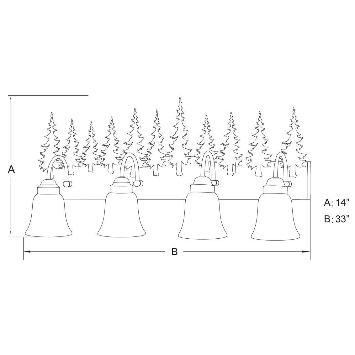Dimensions: W 33" x H 14", extends 8" from wall
